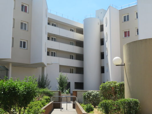 La résidence a été édifiée par Claude Vasconi, en 1983, lors de la construction de la ville nouvelle de Evry. La particularité de cette résidence est qu’elle est construite sur pilotis, permettant l’installation de commerces et d’un centre commercial en pied de résidence. Cet immeuble a fait l’objet de différentes rénovations successives. Notre intervention consiste à améliorer la qualité de vie des habitants et le confort thermique avec la mise en place d’une isolation thermique par l’extérieur, le remplaçant des portes palières, la réfection de l’électricité, la rénovation des installations de plomberie, le traitement des embellissements complet des pièces humides, la réfection des toits terrasses avec mise en place d’un isolant plus performant, l’amélioration de la ventilation des logements, la réfection totale des halls…